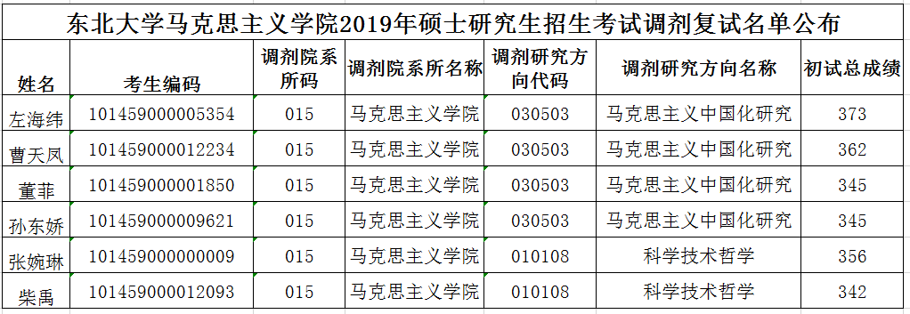麻豆 2019年硕士研究生招生考试调剂复试名单公布