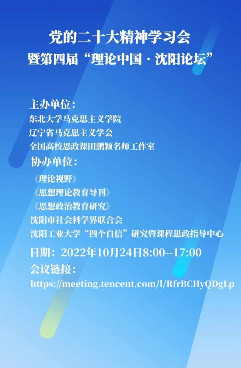 预告|党的二十大精神学习会暨第四届“理论中国•沈阳论坛”