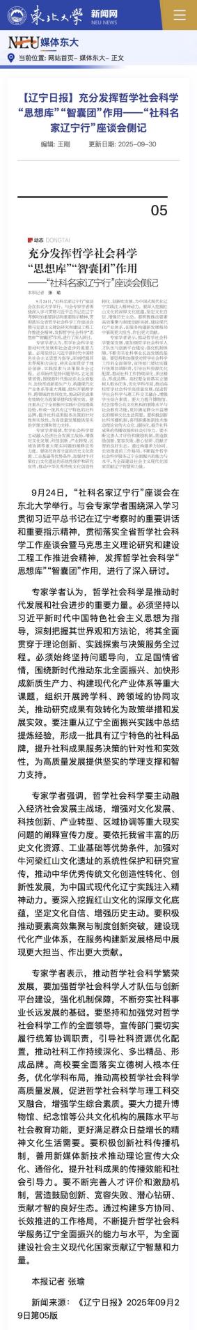 专家学者认为,哲学社会科学是推动时代发展和社会进步的重要力量。必须坚持以习近平新时代中国特色社会主义思想为指导,深刻把握其世界观和方法论,将其全面贯穿于理论创新、实践探索与决策服务全过程。必须始终坚持问题导向,立足国情省情,围绕新时代推动东北全面振兴、加快形成新质生产力、构建现代化产业体系等重大课题,组织开展跨学科、跨领域的协同攻关,推动研究成果有效转化为政策举措和发展实效。要注重从辽宁全面振兴实践中总结提炼经验,形成一批具有辽宁特色的社科品牌,提升社科成果服务决策的针对性和实效性,为高质量发展提供坚实的学理支撑和智力支持。